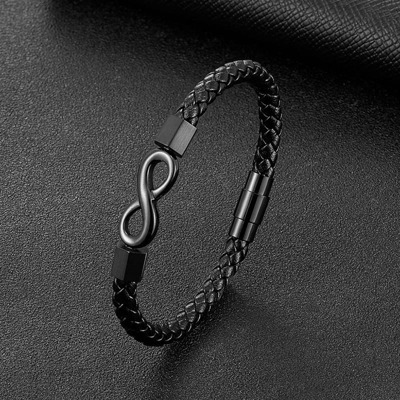 Pulseira Infinito em Aço Inoxidável & Couro Premium – Estilo com Significado